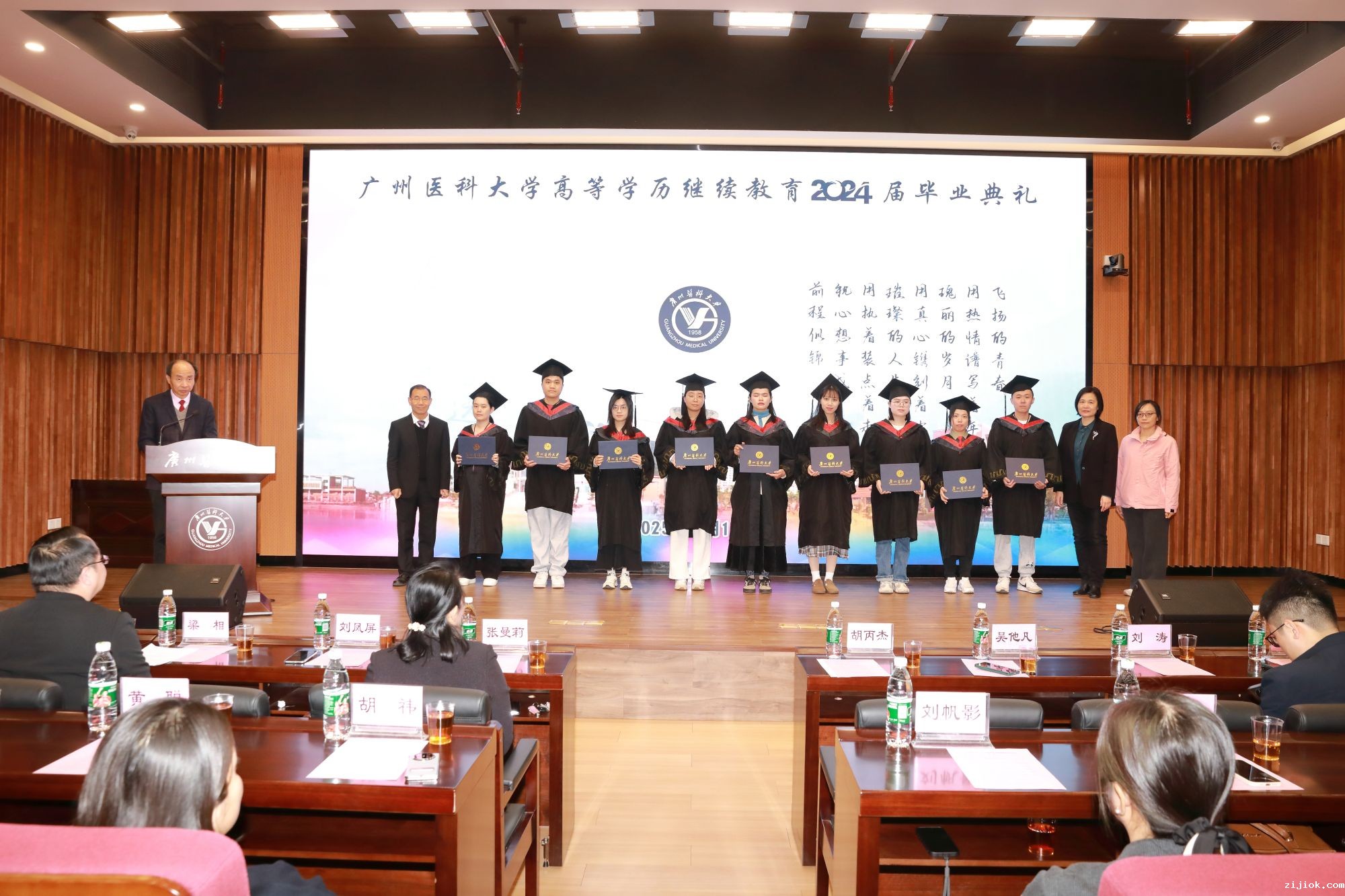 全科医学与继续教育学院副院长梁相、罗奕川分别宣读2024届高等学历继续教育优秀毕业生、优秀学生干部表彰决定。胡丙杰副校长、二级学院领导为优秀毕业生代表、优秀学生干部代表颁发奖状。胡丙杰副校长、各二级学院领导、各教学点负责人分批为校本部、各教学点毕业生代表颁发毕业证书。