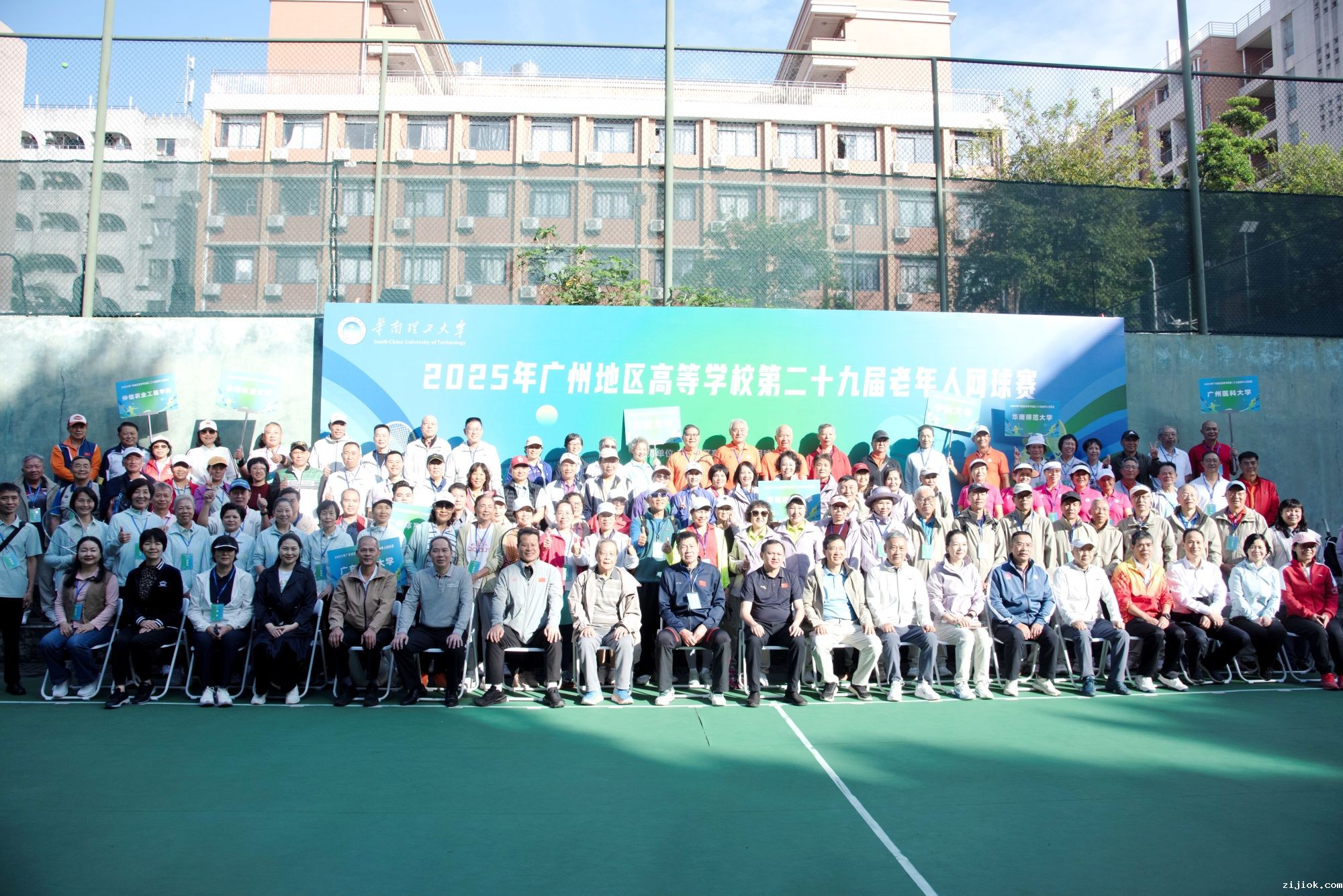 11月15日上午,2025年广州地区高等学校第二十九届老年人网球赛在华南理工大学举行。学校离退处积极动员,组织我校退休网球爱好者参与男子丙组网球双打项目。