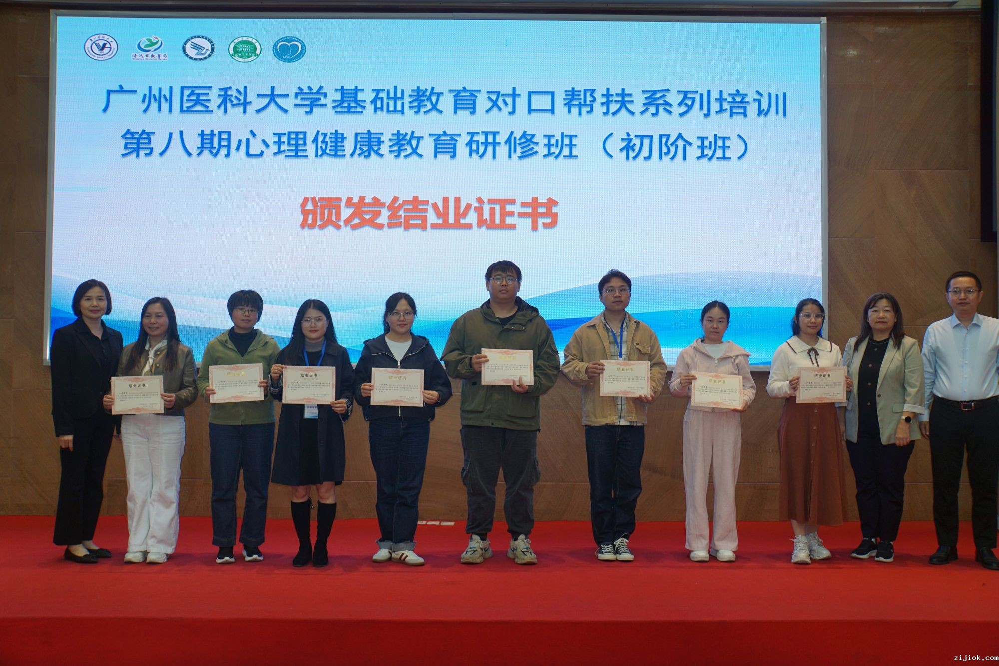 仪式最后,与会领导为学员代表颁发了结业证书并合影留念,标志着第八期心理健康教育研修班(初阶班)圆满落幕。