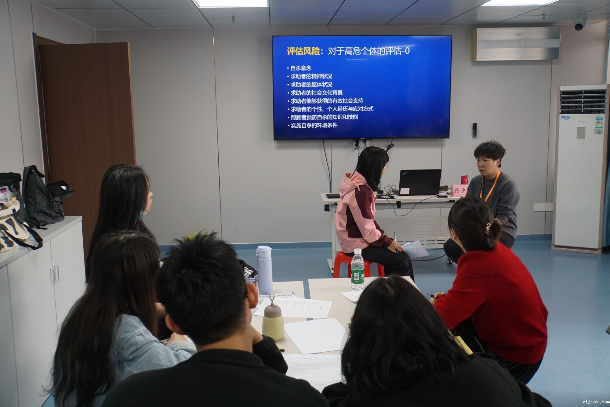 11月13日上午黄若燕主任讲授《干预技术:倾听及稳定》,强调建立信任关系的重要性;陈夕圆副主任在《青少年自杀风险评估和干预策略》中详细讲解了PHQ-9等评估工具的使用,对青少年儿童心理危机评估重点进行了讲述;姜南副主任介绍了《简快重建法在团辅中的应用》,通过"问题呈现—信息传递—应对探讨—总结提升"四步法指导团体心理干预。下午,朱颖贤心理治疗师带来《CBT提升自我感受》理论课程,带领学员学习如何打破负面认知循环,提升自我感受与情绪管理能力。随后四位专家共同带领"生活事件后CBT实操"工作坊,指导学员运用认知行为疗法破解"思维陷阱",掌握情绪调节的实用技能。