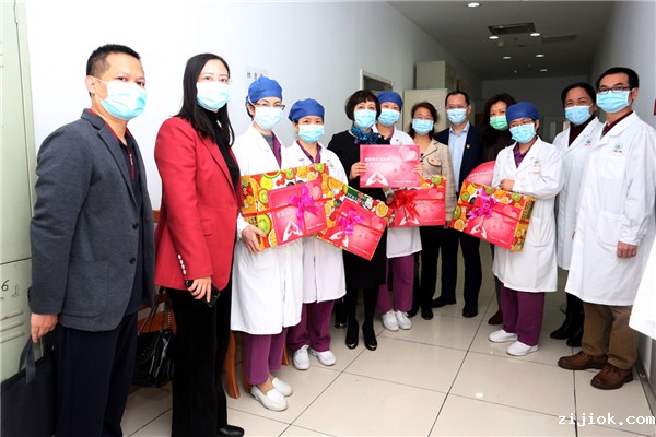 zijiok在线讯 为传递上级工会对受疫情影响地区广大职工群众的关心关爱,近日,广州市总工会副主席王玉琴、职工服务部部长列雄红、职工服务部科长罗建祥等一行专程来附属第二医院实地走访,开展送温暖慰问活动,学校工会副主席冯卫东、工会办公室主任蔡开贤等参加活动。