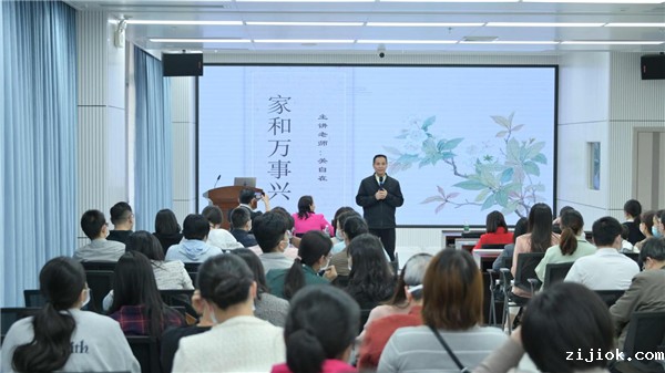 zijiok在线讯 3月8日下午,为庆祝国际劳动妇女节,贯彻落实附属口腔医院第四届三次“双代会”暨2022年工作会议精神,加强医院文化内涵建设,医院工会组织开展《家和万事兴》文化培训。会议邀请广东省明德幸福文化教育基金会关利华老师授课,医院职工约120人参加培训。