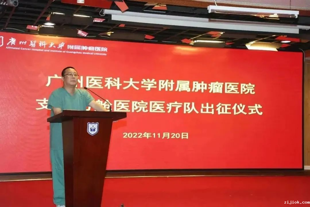 20日当晚,在学术报告厅举行的出征仪式上,肿瘤医院负责人作动员讲话,他指出,当前,医院广大职工应积极响应广州疫情防控工作,毅然奔赴疫情防控一线。他强调,支援方舱医院医疗队务必听指挥、守纪律、勇担当,以坚定的信心、顽强的意志打赢这场硬仗;同时要做好防护、确保安全,肩负使命出发,平安归来。