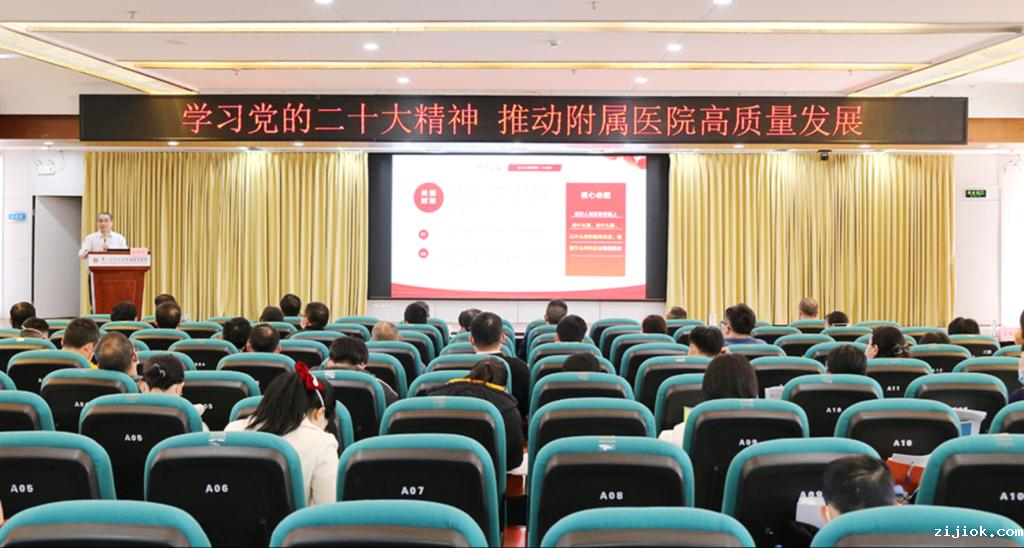 陈晓辉副书记结合个人的学习感悟和实践思考,聚焦党的二十大报告中关于推进健康中国建设的部署要求,从“提高政治站位,深刻领悟二十大对大局大势的科学洞察和战略运筹”“坚持系统观念,深刻把握公立医院高质量发展的历史逻辑和实践要求”“坚持顶天立地,科学规划附属医院高质量发展的施工图”三个视角,全面梳理医院高质量发展的工作要求和努力方向,指明了医院高质量发展的最佳路径。他指出,要全面学习、把握和落实党的二十大精神,坚持以人民为中心,为人民服务,发展专科诊疗技术,全面提升临床服务能力和医疗质量。