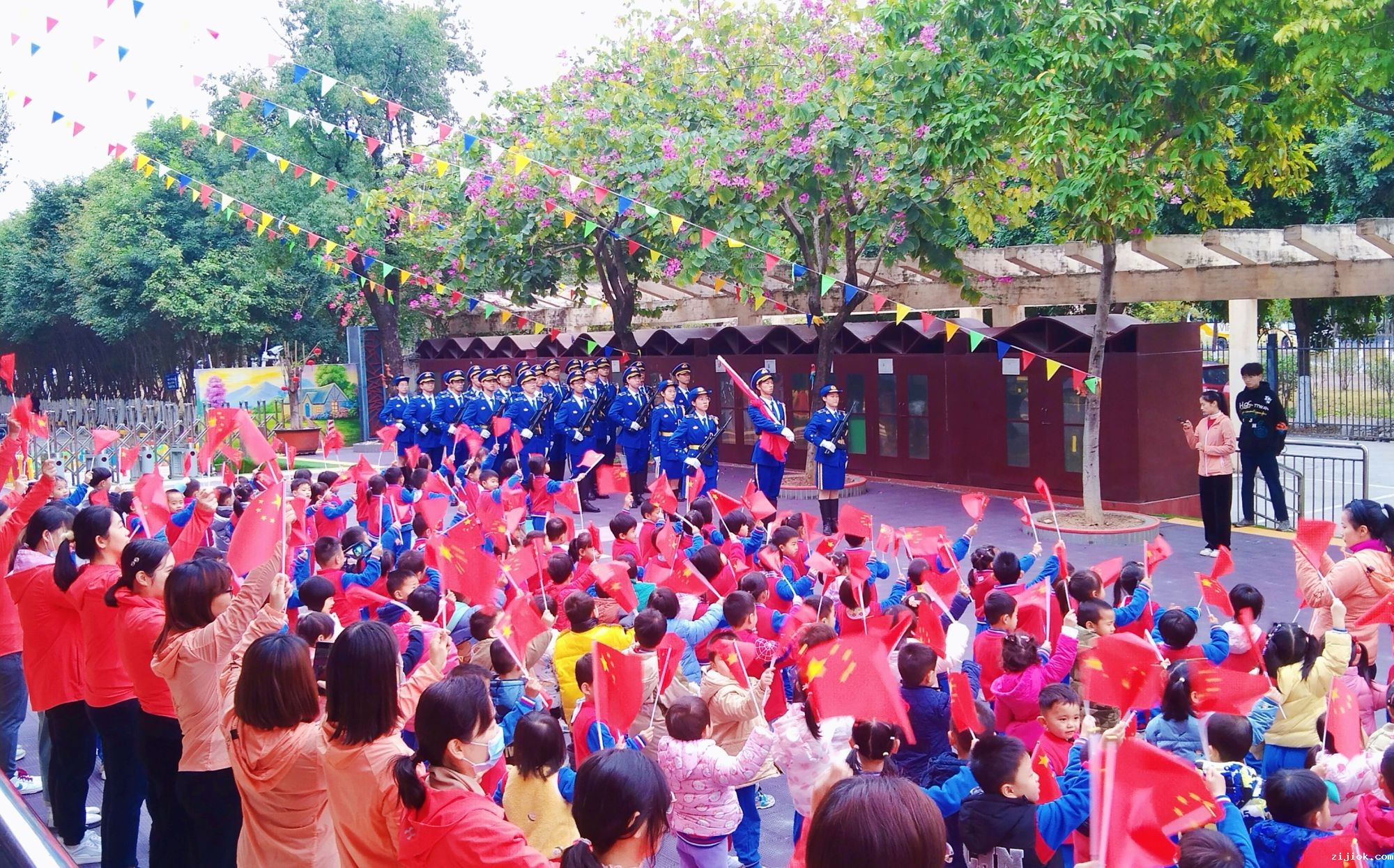 本网讯 2月26日上午,我校国旗护卫队应邀到广州市南沙区第二幼儿园,在其2个园区先后开展“大手拉小手,共谱爱国情”爱国主义教育活动,大小朋友同升一面旗,进一步激发爱国主义情感。