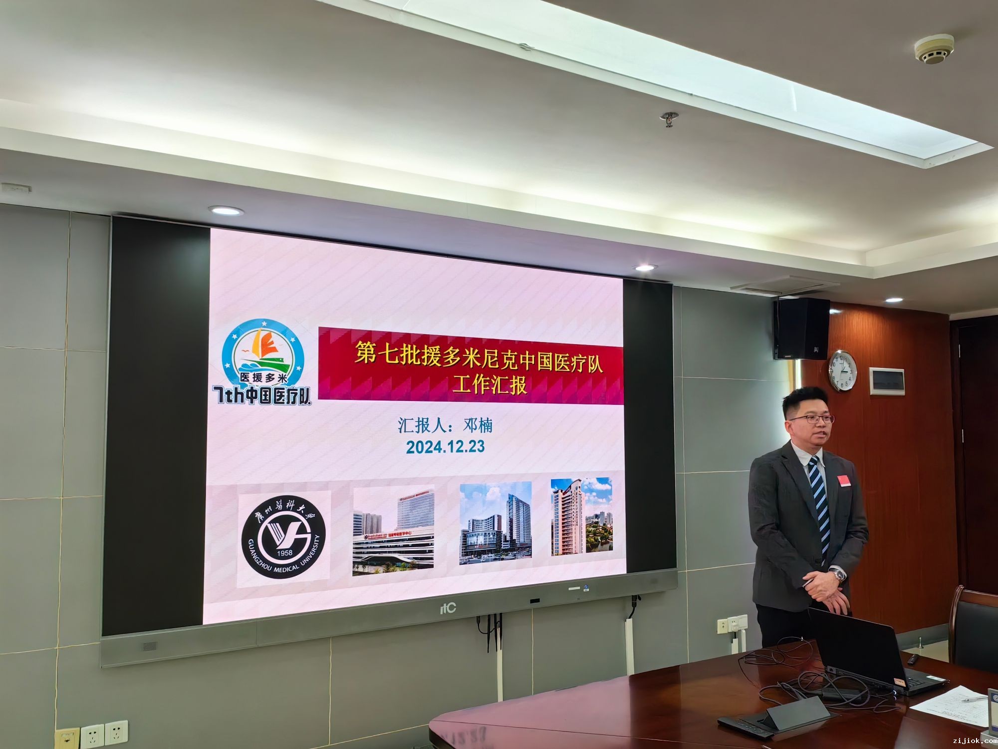 第7批援多米尼克中国医疗队队长邓楠作工作汇报