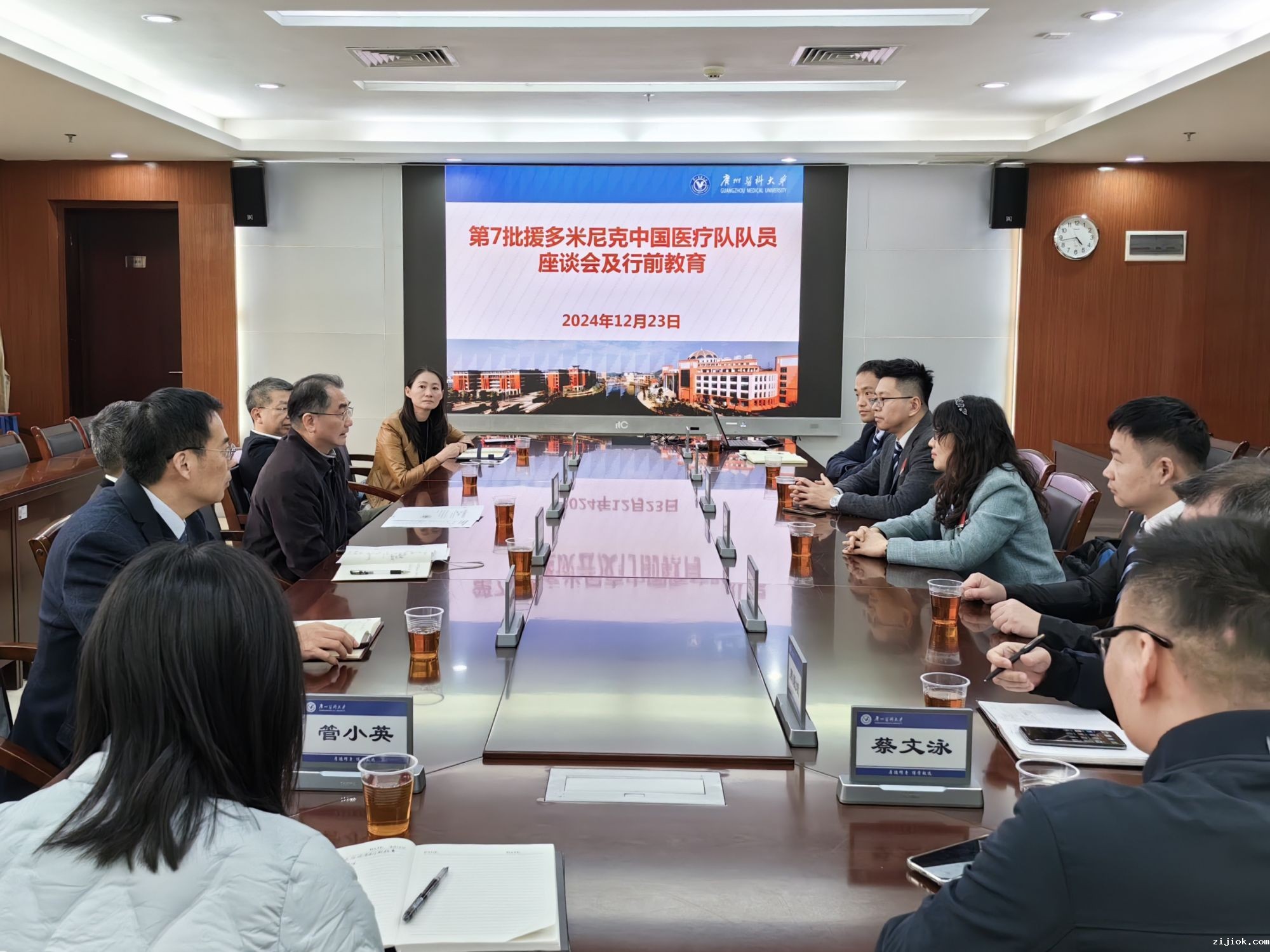 本网讯 12月23日,我校在番禺校区召开第7批援多米尼克中国医疗队队员座谈会及开展行前教育。学校党委副书记陈晓辉,第7批援多米尼克中国医疗队队员,医院管理处、对外合作交流处、人事处、附属第一医院、附属第二医院、附属第三医院有关负责人等参加会议。会议由医院管理处处长李章生主持。