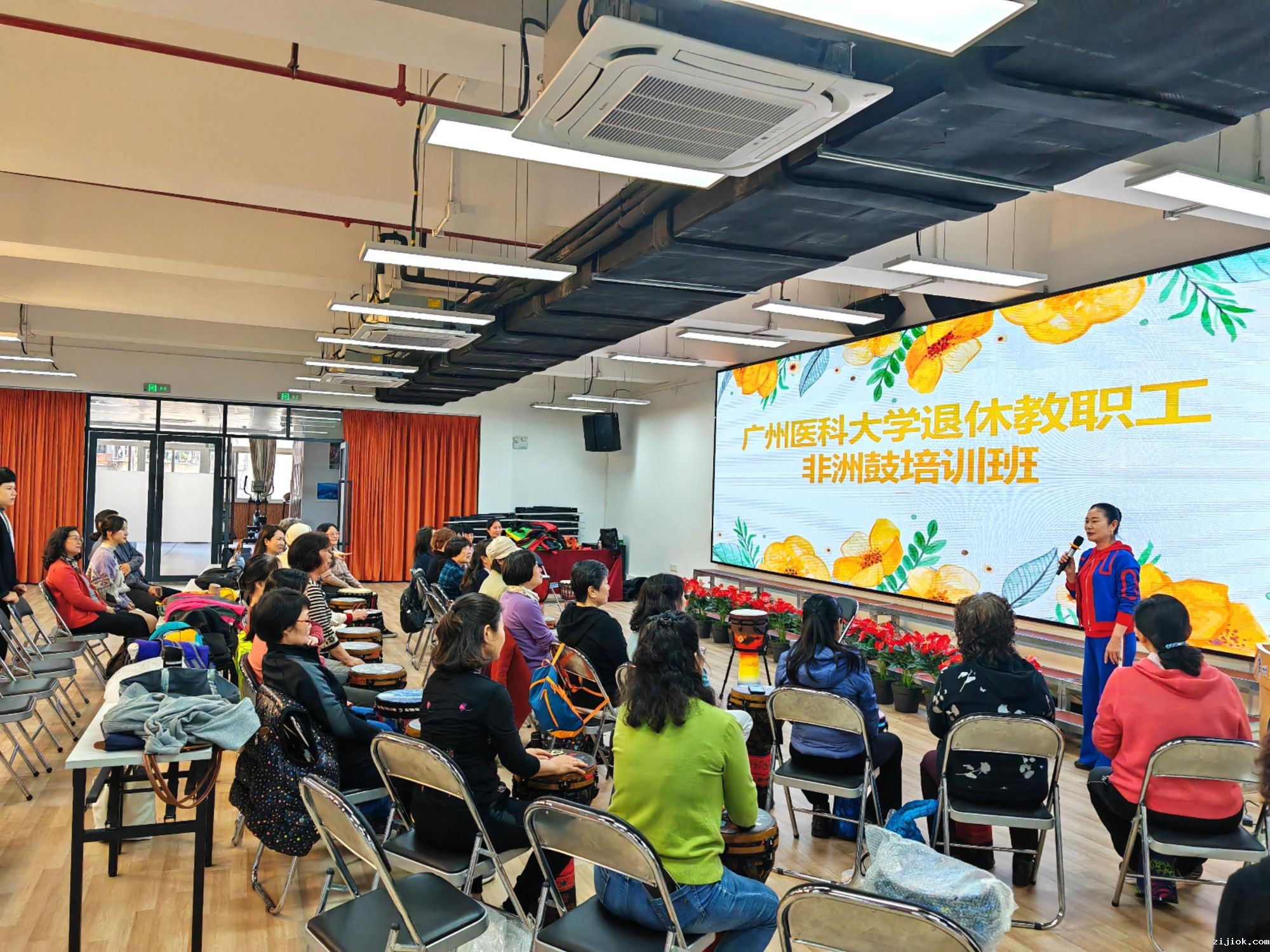 本网讯 为不断满足老同志多样化的学习需求,进一步提高老同志的艺术素养和文化艺术技能、提供展示自我的平台,3月19日下午,退休教职工非洲鼓培训班在学校老干部活动中心多功能室正式开课,老同志们热情高涨、踊跃参与。