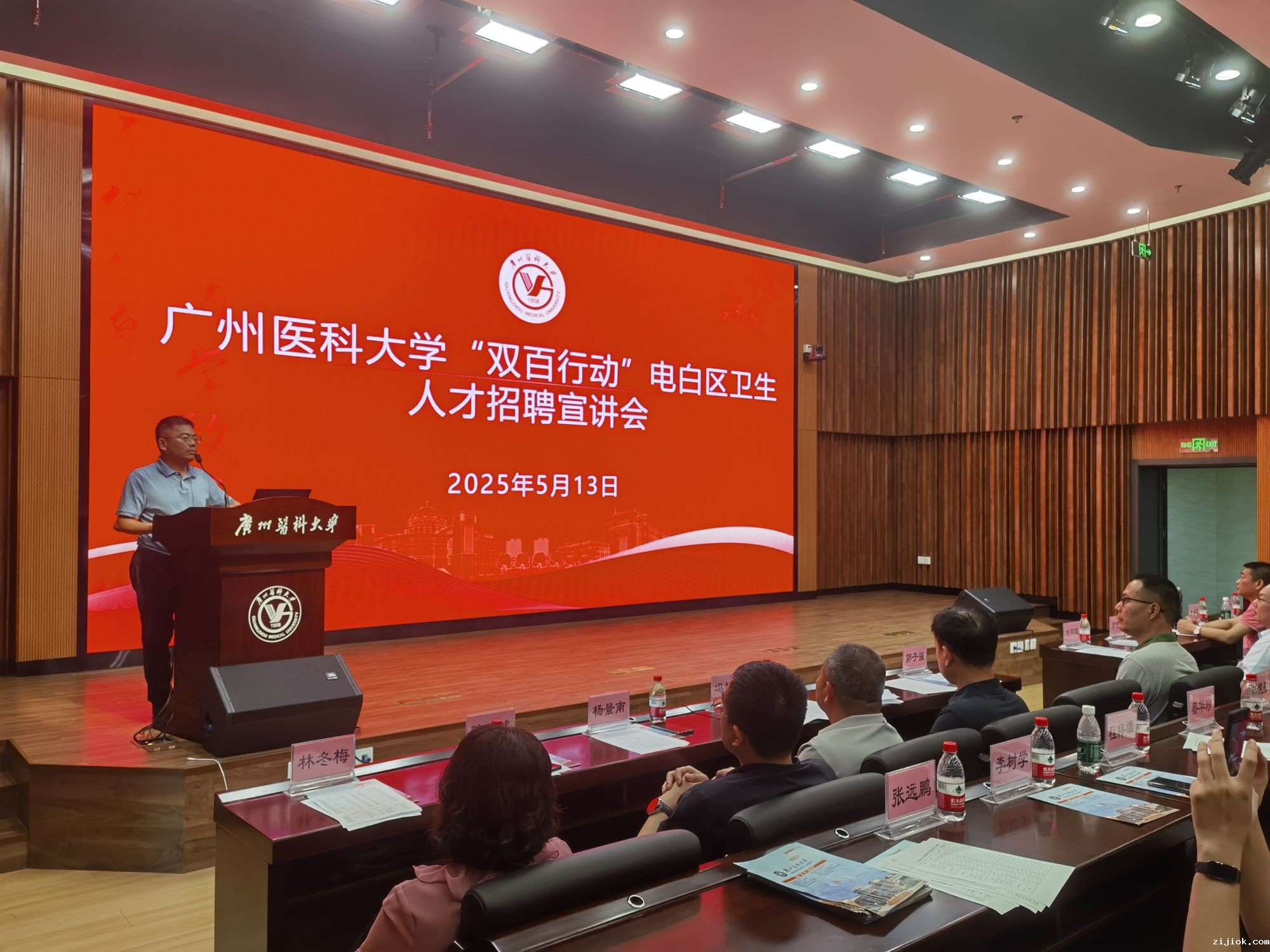 研究生院党委副书记郭子强向与会领导老师和同学们介绍了我校研究生和本科生2025届毕业生的相关情况以及学校发展情况。林世忠副局长向我校老师和同学们介绍了电白人才招聘政策、风土人情、未来发展规划等,诚意邀请各位学子到电白就业创业。随后区直三家医院代表分别对医院整体概况和人才招聘具体情况等进行介绍。宣讲结束后,开展了现场报名、咨询和面试交流等活动。
