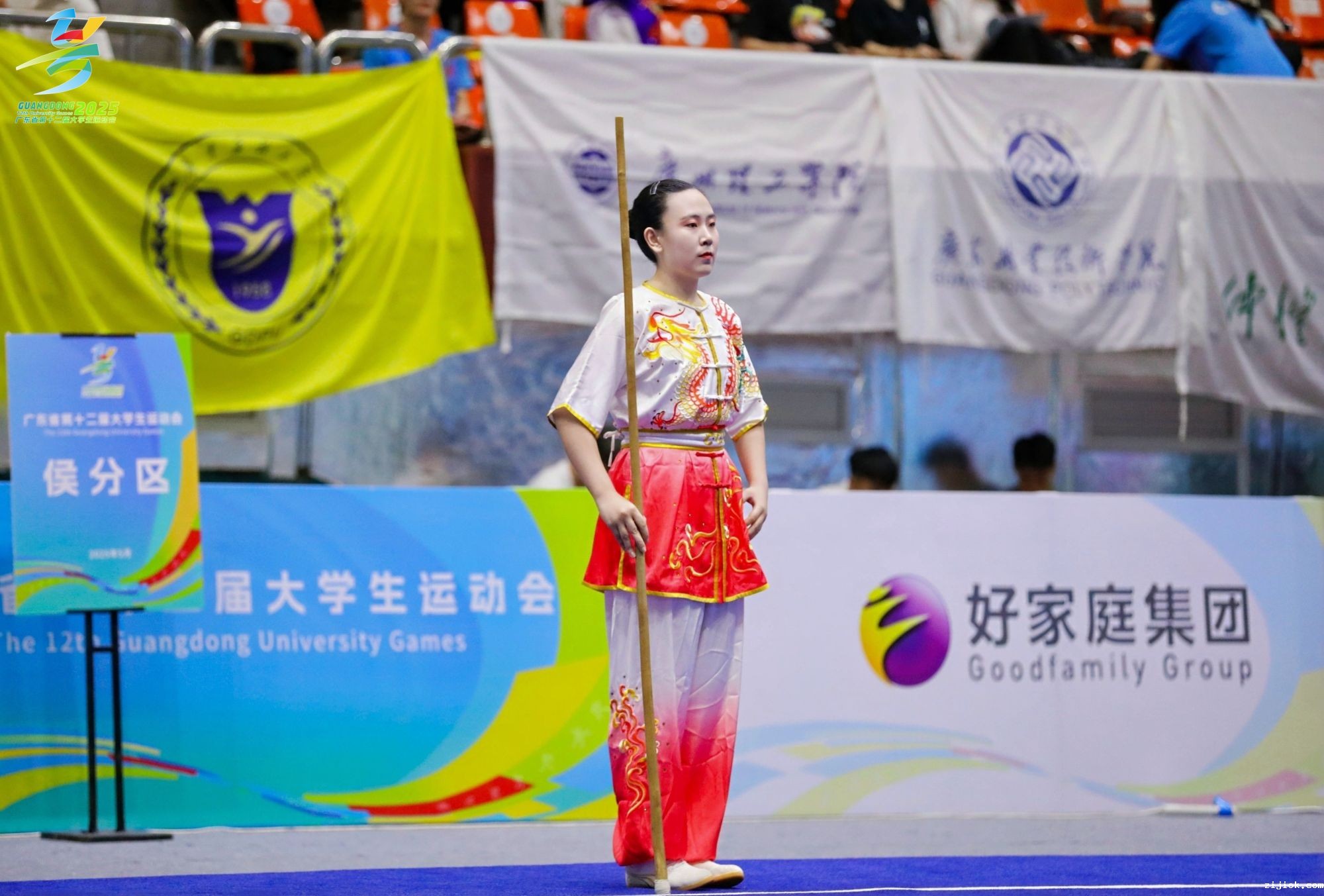 公共卫生学院的陈倚婷获得女子甲组自选刀术铜牌、自选枪术第六名