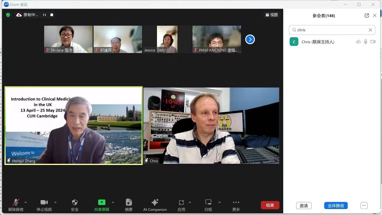 本网讯 4月13日,剑桥大学附属医院临床医学线上课程项目开班。我校教务处处长郑建民,各学院师生140余名代表和剑桥大学附属医院教师代表参加开班仪式。对外合作交流处副处长马晓洁主持开班仪式。