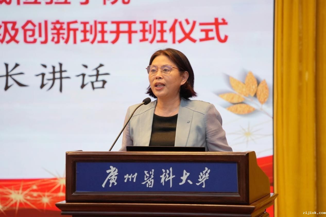 广州实验室徐强教授作为创新班导师代表进行发言,他勉励同学们珍惜青春时光,在校期间形成正确的人生观、价值观,确立人生目标,以奋斗、奉献、承担责任为名,强健体魄,为祖国健康工作五十年。
