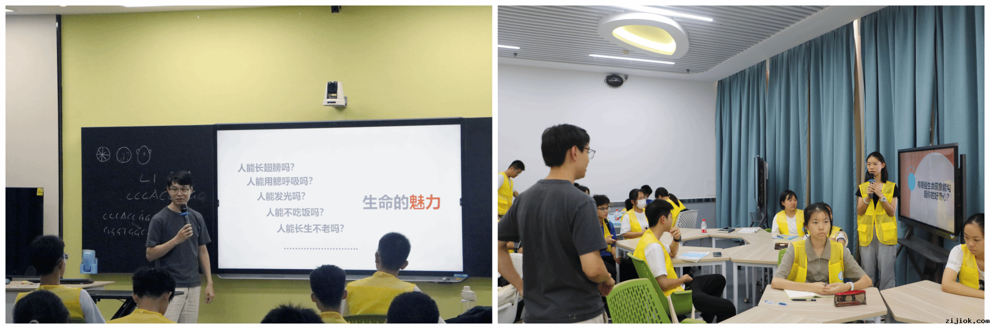 为丰富同学们的课余生活,本次夏令营组织了团建游戏、生物技术专业优秀学生分享交流会、生物学科学知识抢答和观看生物纪录片等趣味活动。