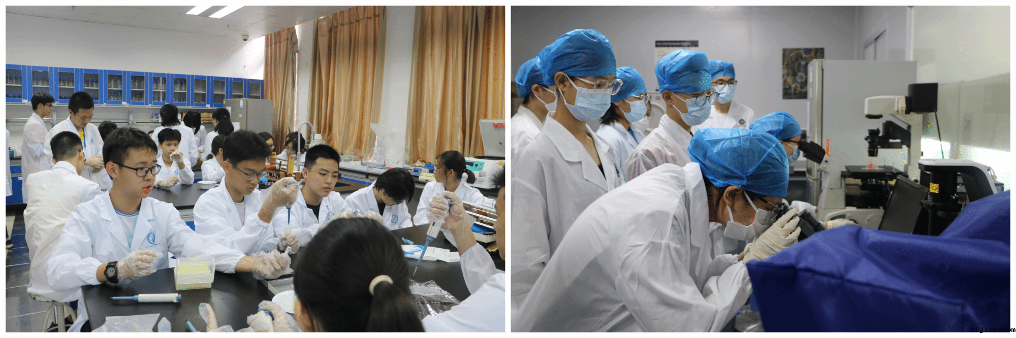 为切实将生物科学科技特色融入实际,夏令营活动开展了一系列高质量的专题讲座。生科院生物技术系陈冰洁教授以生动的语言讲授了生物信息学的基础知识,引领同学们走进数据驱动的生物研究世界。医学遗传学与细胞生物学教研室丁岩岩教授过《斑马鱼:水中小白鼠》专题讲座,结合实验室参观,让同学们进一步体验了科研的乐趣。国家级人才(青年)陈焱埔教授讲授《生命的魅力》,让同学们深刻感受到了生命的奇妙与伟大。华南师范大学生命科学学院丁雪娟教授深入浅出地介绍了寄生虫学的奥秘,让同学们对自然界的微观世界有了更深的认识。