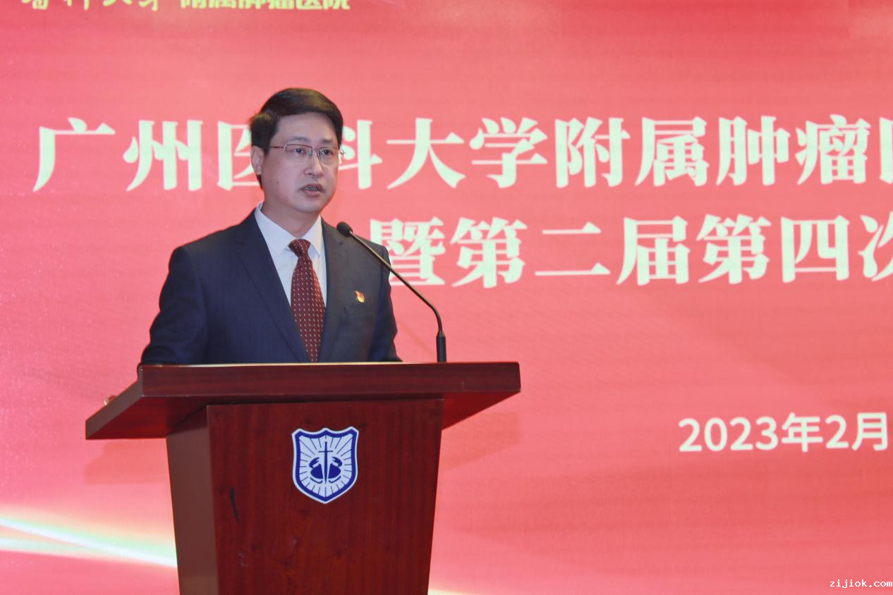 医院党委副书记、院长向大会作了题为《踔厉奋发,勇毅前行,推进医院高质量发展再上新台阶》的工作报告。他围绕党的建设、医疗服务、学科和人才队伍建设、科研教学、运营管理、宣传和文化建设等总结医院各方面的工作成绩。他指出,2023年医院将全面贯彻落实党的二十大精神,完整准确全面贯彻新发展理念,推进医院高质量发展。医院工作目标,持续提升医院服务能力和效率,门诊量、出院病人争取同比增长25%;对2023年10项重点工作进行安排,围绕多措并举提升医疗质量、着力加强科研和教学工作、持续提升医院管理水平、推进全面从严治党等方面对各项工作进行了布置。2023年十项重点工作:坚定不移加强医院党的建设;大力推进“双一流”建设;做实做细绩效考核工作;打造重点专科平台建设;积极落实“癌症防治行动”;提升医院信息化水平;深化人才队伍建设;提高运营管理水平;推进基础设施大项目建设;建设高素质干部队伍。