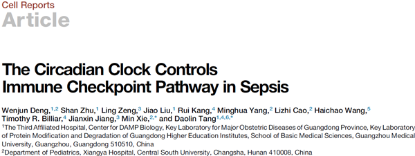 zijiok在线讯 7月10日,我校附属第三医院唐道林博士主持的课题组在细胞出版集团刊物Cell Reports上发表题为“The Circadian Clock Controls Immune Checkpoint Pathway in Sepsis”的封面研究论文,报道了生物钟紊乱促进免疫代谢失衡、参与脓毒症发病的分子机制。