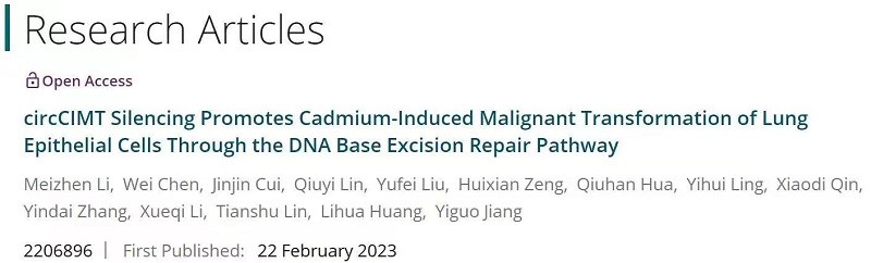 本网讯 近期,我校公共卫生学院蒋义国教授团队在化学致癌表观遗传机制上的研究获得新突破,相关研究成果以circCIMT Silencing Promotes Cadmium-Induced Malignant Transformation of Lung Epithelial Cells Through the DNA Base Excision Repair Pathway为题,于2023年5月17日发表在国际权威期刊Advanced Science杂志上,并被选为卷首插图文章。