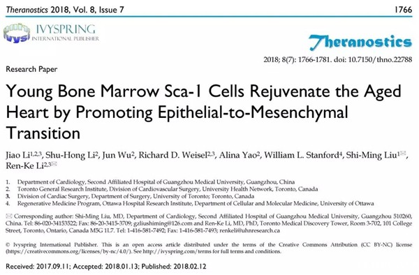 近日,taptap官网下安卓附属第二医院刘世明教授和多伦多大学总医院李仁科教授研究团队成员在生物医学1区杂志《Theranostics》(IF:8.766)上发表论文,证实通过骨髓重建,年青小鼠Sca-1+骨髓干细胞可归巢至年老小鼠心脏心外膜,并通过TGF-β1分子通路促进心外膜细胞增殖、迁移、上皮间质转化,改善心肌梗死后心脏功能。为Sca-1+骨髓干细胞在心肌梗死治疗中的运用提供了新的理论及实验依据。