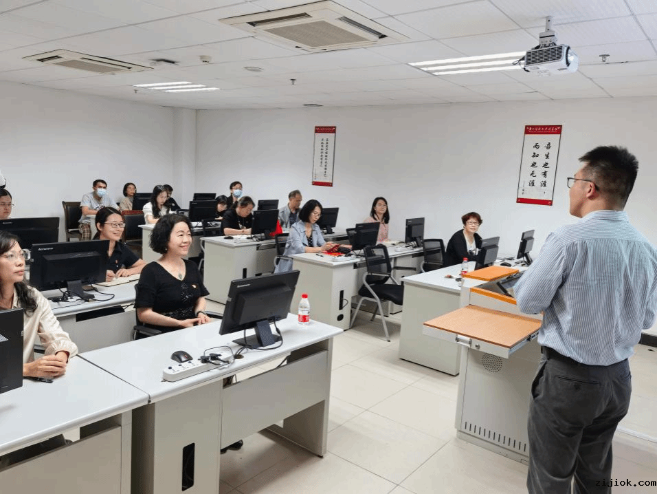 本网讯 为深入学习贯彻习近平新时代中国特色社会主义思想和党的二十大精神,加强党员党性修养,提升图书馆党支部为读者服务的意识和能力,2023年12月12日上午,图书馆特邀马克思主义学院张建副教授在番禺校区图书馆四楼培训室主讲了一场题为“在两个‘行’中推进中国式现代化”的专题党课。图书馆党支部全体党员和两位特邀部门负责人一起认真聆听、学习了本次党课。
