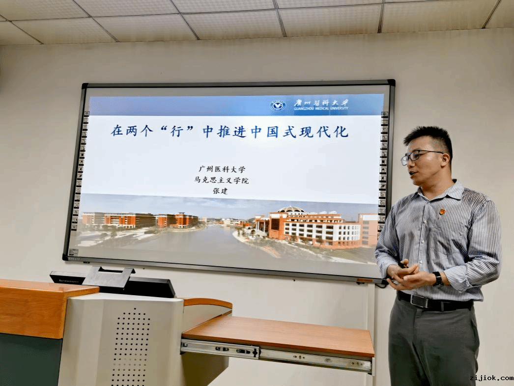 张建副教授首先给大家梳理了党的二十大报告中15个部分的内在逻辑与重点内容,学习贯彻党的二十大精神要做到5个“牢牢把握”,强调中国式现代化的理论根基,归根到底是“两个行”;随后结合马克思主义鲜明的科学性、人民性、实践性、发展性特征和中国具体实际发展,深入阐述了“归根到底是马克思主义行,是中国化时代化的马克思主义行”这一重要论述;并着重提醒在场党员,“不断谱写马克思主义中国化时代化新篇章,是当代中国共产党人的庄严历史责任。”我们要全面系统掌握习近平新时代中国特色社会主义思想的科学体系,坚持运用辩证唯物主义和历史唯物主义,深刻认识和把握“六个必须坚持”。结合学校发展实际与具体岗位工作,就要遵循zijiok实际、教育发展规律、医学科学规律,坚持从客观实际出发制定政策、推动工作;要直面学校、医院各部门难点、痛点、热点,不断强化问题意识,积极面对和化解前进中遇到的矛盾;要开展科研反哺教学、教学滋养科研、教授为本科生授课、大思政课建设等,不断推进实践基础上的理论创新;加快推进医院治理体系与能力改革、教育教学改革、人才培养改革等,深入理解全面深化改革的重要性和紧迫性;加强一线人员经验交流,发挥机关和部门基层实践智慧,紧紧依靠人民推进改革。