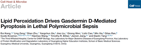 Sepsis”的研究论文,报道了脂质过氧化促进巨噬细胞焦死亡、参与脓毒症发病的分子机制。