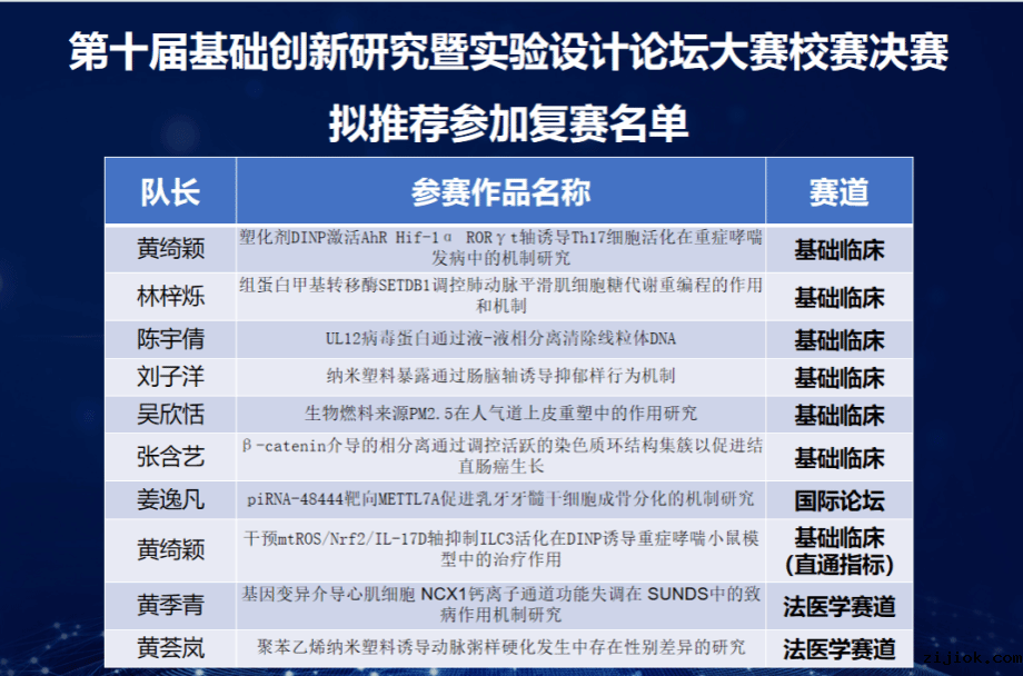 在激烈的汇报答辩后,评委组现场评分排名,根据学校推荐指标确定本次拟推荐参加第十届全国大学生基础医学创新研究暨实验设计论坛中南赛区复赛的队伍名单。