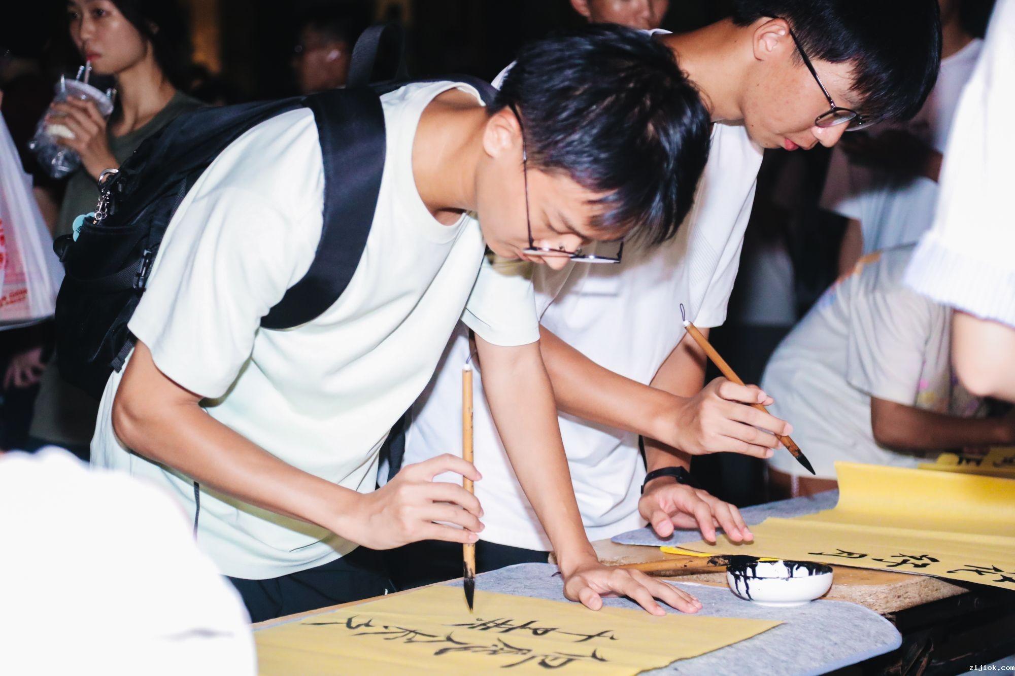 游园会现场,百余盏手工灯笼在南山广场与校道旁连成一片温暖的灯海。在“南山灯韵 月满华诞”盛会中,画团扇、缝香囊、投壶等传统体验区前人头攒动。同学们在动手实践中了解千年文脉,感受文化魅力。